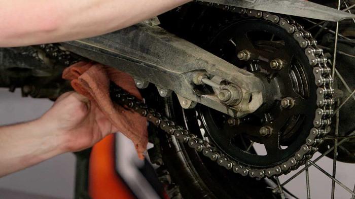 Untuk motor bebek dan sport, periksa kekencangan serta pelumasan rantai.