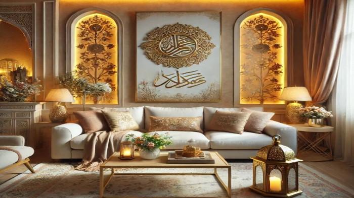 Tambahkan hiasan dinding bertema Ramadhan, lampu hias kecil dengan cahaya hangat, atau ornamen kaligrafi sebagai aksen.