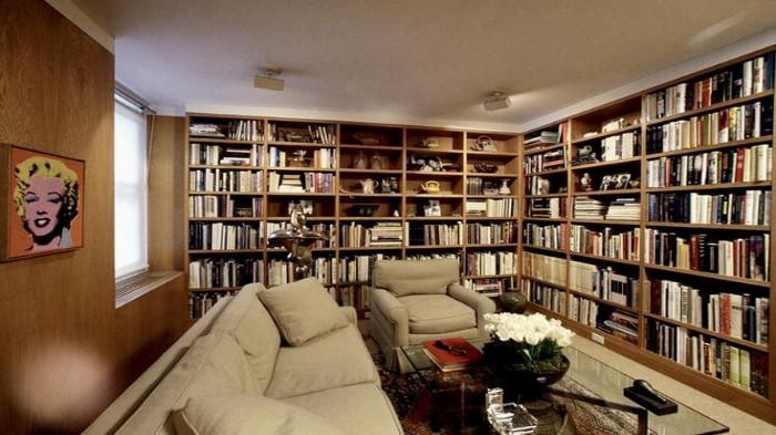 Rak buku merupakan elemen utama dalam perpustakaan pribadi.
