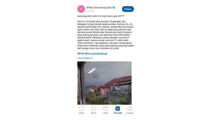 Ada juga momen sederhana Afifah AmroAmatulloh di kereta sore Bandung.