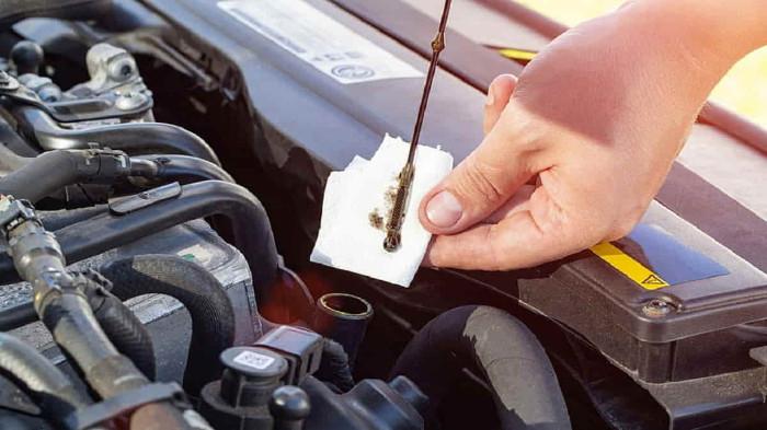 Oli yang masih baik biasanya berwarna lebih jernih, sedangkan oli yang sudah lama akan berubah menjadi hitam pekat.