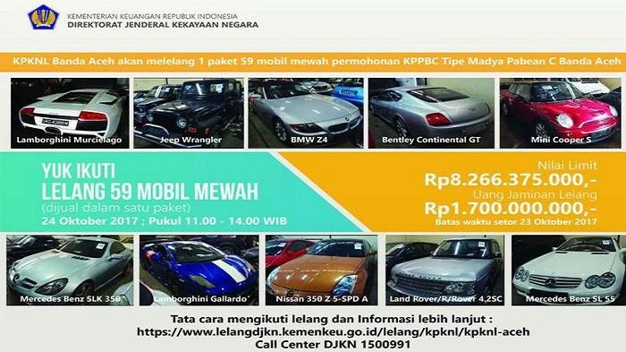 Barang yang dilelang merupakan satu paket mobil mewah yang terdiri dari 59 unit.