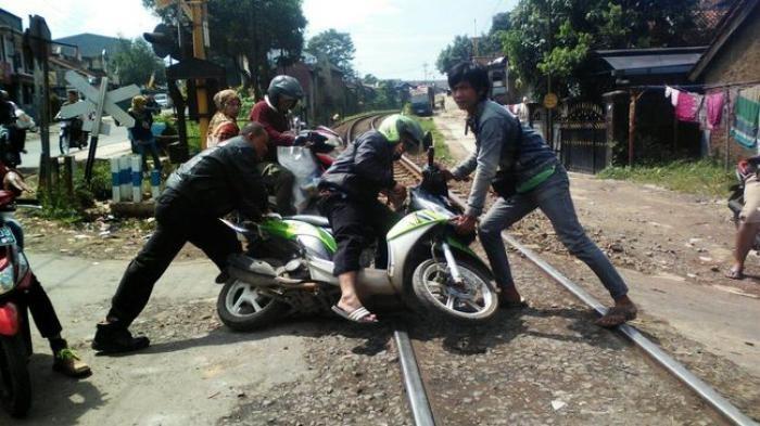 TRIBUNJUALBELI.COM - Kecelakaan yang kerap terjadi di perlintasan jalur kereta api tidak membuat pengendara motor menjadi waspada atau jera.
