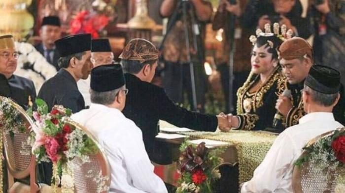 Bobby mengucapkan ijab kabul di hadapan Jokowi.