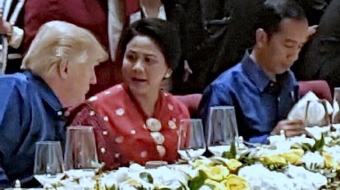 Dalam potongan video yang tersebar, Donald Trump seperti mengajak bicara ibu negara Iriana.