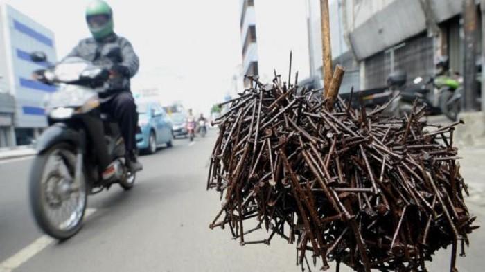 Pasalnya, masih ada oknum yang menyebar ranjau paku atau potongan jari-jari payung.