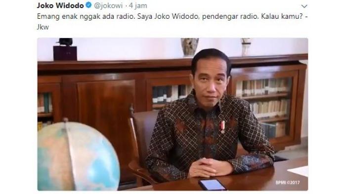 "Emang enak enggak ada radio? Saya Joko Widodo, pendengar radio," kata Jokowi.