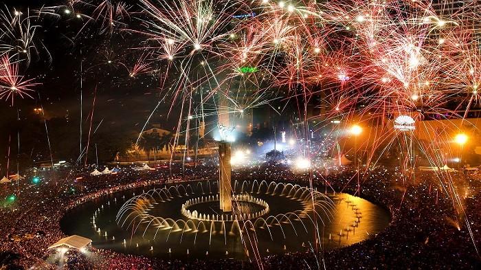 Di Monas Anda akan mendapatkan pemandangan pesta kembang api dan hiburan musik.