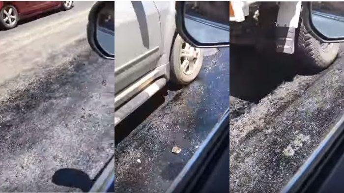 Hal ini dikarenakan aspal di jalan tersebut meleleh saking panasnya.
