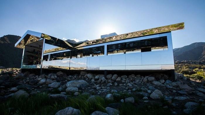 Rumah yang setiap sisinya dapat memantulkan bayangan ini juga menjadi salah satu instalasi di pameran seni kontemporer, Desert X.